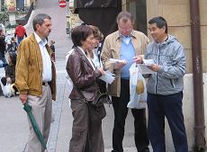 ![]() 法轮功学员向行人洪法、讲真相 |