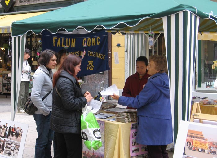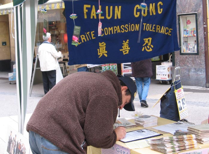 二零零七年六月二日,法轮功学员再次来到这里洪法。学员们在市中心设立了展位,向市民介绍法轮大法的美好,并揭露中共残酷迫害大法弟子的罪行。他们发放真相材料,演示五套功法,并回答行人的询问,收到了很好的洪法效果。许多市民不仅欣然接受真相材料,还主动签名表示对法轮大法弟子的支持,以及对中共残酷迫害法轮功的谴责。有行人在拿取真相材料走后,又很快返回,说是刚才忘了签名,待认真签名后才又离去。