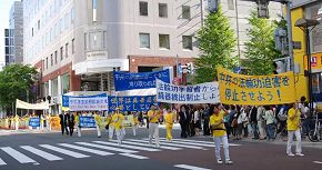 日本法轮大法学会负责人鹤园先生指出在九州也发生了当地中领馆施压,法轮功学员被拒绝参加节日庆典的事。他呼吁日本民众对此关注,不允许中共对法轮功的迫害继续发生。另外两位法轮功学员杨贵远和张延辉也讲述了自己与亲友因修炼法轮功而遭受中共的迫害,呼吁人们认清中共的邪恶本质,尽快三:退.(退出中共党、团、队)、脱离中共,拥有美好未来。