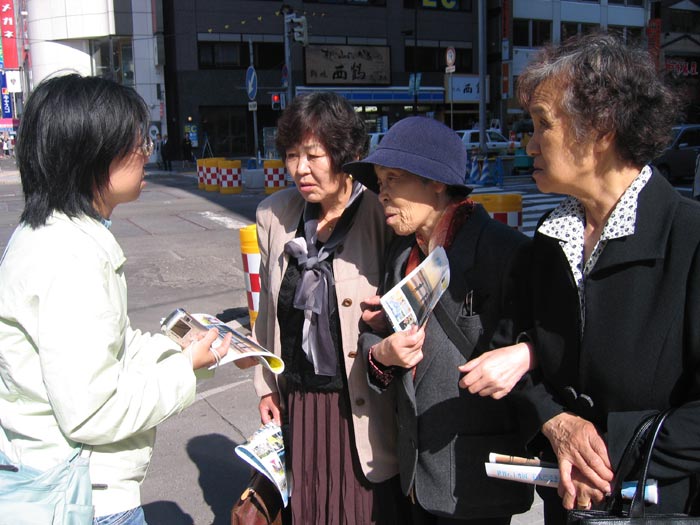 ![]() 三位日本女士对中国文化表现出浓厚的兴趣,并关注法轮功在中国大陆受迫害的情况 |