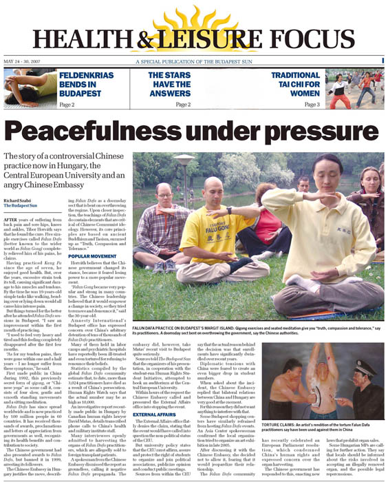 大赦国际布达佩斯分部曾表达了对中共肆意监禁成千上万的法轮功学员的关注。据报导,被关押在劳教所和精神病院的许多学员遭到虐待,更有甚者,他们因拒绝放弃修炼法轮功而遭到酷刑折磨。