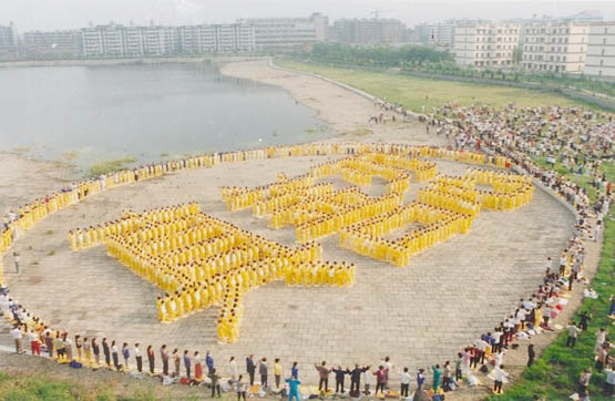 ![]() 一九九八年武汉法轮功学员大型排字炼功 |