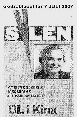 ![]() 丹麦最大体育报纸《号外》刊登欧盟议员吉特•斯布亚的文章:《奥运在中国?》 |