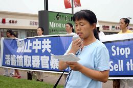 法轮功学员魏女士讲述她怎样认清了中共谎言的过程:“八年前,也就是一九九九年七月二十日,中共邪*党-全面开始了对法轮功的迫害,同时利用所有的报纸、电台、电视台对法轮功进行造谣和诬陷。有一件事情使我第一次认识了中共的谎言。法轮功的创始人李洪志师父多次讲法中都说过‘我们不讲世界末日’。我偶然看到了中共的一个节目,播放李老师的讲法录像,但是声音中把那个“不”字拿掉了。我当时是一个什么样的心情呢?我们七十年代出生的人,对文化大革命基本没有印象,当中国的电视机进入一般百姓家里之后,那时候我作为一名学生,学习之余就是看电视,二十多年从来没有怀疑过节目是否具有真实性,从来没有想过电视中的新闻会是假的。这不是向全中国的十几亿人、甚至全世界的几十亿人撒谎吗?但是这确实是现实。我们以前看过的电视、读过的报纸有多少可信的呢?从学校老师那儿学到的有多少是可以信赖的呢?二零零四年年底,大.纪.元;时报推出系列社论《·九·评*共产党》,看完之后,我感到从未有过的震撼,我们以前在学校学的历史都是错的。中共炮制的所谓的天安门自焚事件,更是漏洞百出。时间选在二零零一年中国除夕那一天,还安排了现场有人被打死,火扑灭之后,身穿的衣服被烧破,脸被烧焦,头发却整整齐齐,而且两腿之间装汽油的塑料雪碧瓶子却完好无损,一看就知道是一场精心策划的骗局。然而中共还是煽动起很多人对法轮功修炼者的仇恨。在这些漏洞被揭穿以后,中共删除了有漏洞的镜头,还在继续播放,长期以来习惯于中共灌输谎言的大多数人,仍然相信中共的谎言。我们今天聚集在这里,是希望更多的人有机会了解法轮功被迫害的真相,识破中共的谎言。中共迫害法轮功是错的,法轮功学员讲真相、反迫害是正义的。”