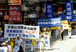 江泽民一伙想尽方法,动用了中共全套宣传机器,在全国以至全世界铺天盖地的散播诬蔑诋毁法轮功的谎言,煽动不明真相的民众仇恨法轮功,挑动群众斗群众,伤害了无数法轮功学员及家属亲友;同时开动了包括军队在内的全套中共暴力专政机器,使用种种不法手段,包括跟踪、窃听、停工停学、剥夺收入、株连亲友,以至于更为残暴的绑架关押、强迫洗脑、酷刑折磨、活摘器官,其灭绝人性、惨无人道超过了古今中外邪恶的大全。目前已知的至少有三千多名大陆法轮功学员被迫害致死,而不知名的死难者更无计其数。最近在七一前夕,手中迫害血债累累的中共死党曾庆红一伙更胁迫港府,制造了香港历来最大的非法暴力遣返案件,超过四百八十名台湾法轮功学员被拒绝入境以至强制暴力遣返,二百五十多名学员在台湾被拒绝发给来港签证,二十多人被拒登机。此举不但严重侵犯了法轮功修炼者的基本人权,损害了香港自由法治的国际形象,便再一次的将港府捆绑成为迫害的帮凶,令香港的前途蒙上沉重的阴影。