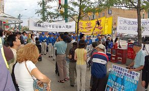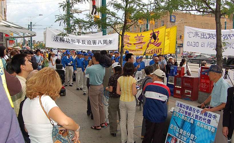 ![]() 多伦多法轮功学员纪念和平反迫害八周年集会现场 |