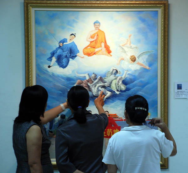 七月十二日,嘉义监狱教化科长林丰材与教诲师杨金恒,在“真善忍美展”于民雄图书馆展出的最后一天参观画展,仔细欣赏了四十一幅画作,并由导览员解说画中的内涵,他们都认为该批作品对受刑人具有正面的教化意义,林科长当场邀请法轮功学员到嘉义监狱继续展出。