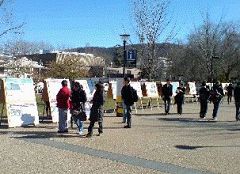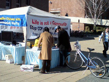 有位中国留学生前来了解真相时,表示自己不是中共党员,没有退!党!的机会。经服务人员说明可以退共青团或少先队时,他决定两者皆退。另外有许多中国留学生对揭露中共迫害法轮功罪行的海报深感兴趣,在展板前驻足细读内容。