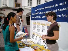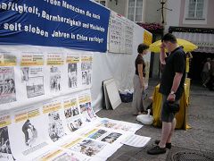 【明慧网二零零七年七月二日】二零零七年六月三十日,奥地利萨尔斯堡部份法轮功学员在老城举行活动,曝光中共对法轮功学员的残酷