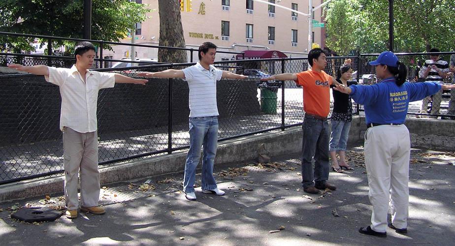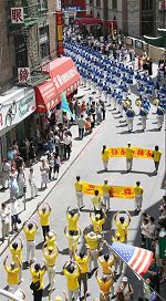 ![]() 炼功方阵向人们介绍着法轮功这个有益身心的功法 |