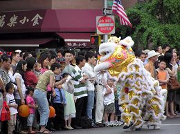 ![]() 声势浩大的天国乐团引起了唐人街的民众的浓厚兴趣 |