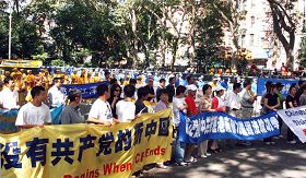 来自中国大陆的赫荣侠说,他认识到中共是一个腐败、黑暗、残暴的政党,宣布退出中共。中国民主党世界同盟和中国自由民主党的四十多名勇士在集会上集体宣布退出中国共产党及其相关组织。现场很多民众接受义工发的“·九·评*”特刊,不少立即打开阅读。