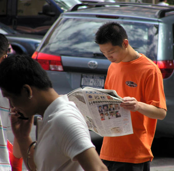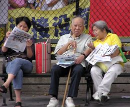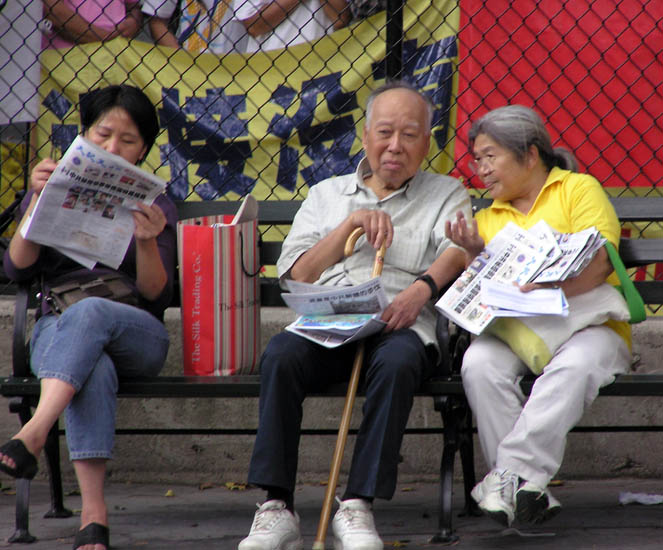 ![]() 中国城老人在聆听千万人退出中共的消息 |