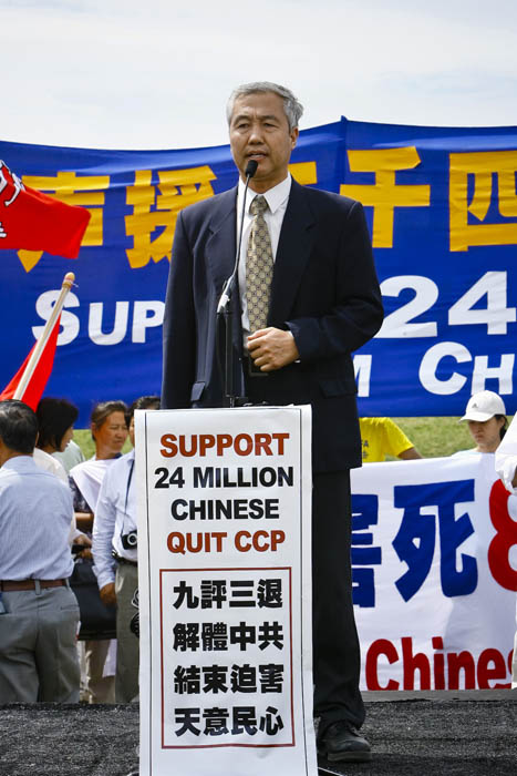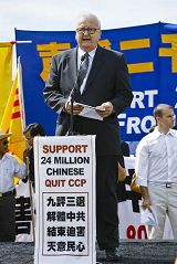 ![]() 追查迫害法轮功国际组织发言人汪志远在集会发言 |