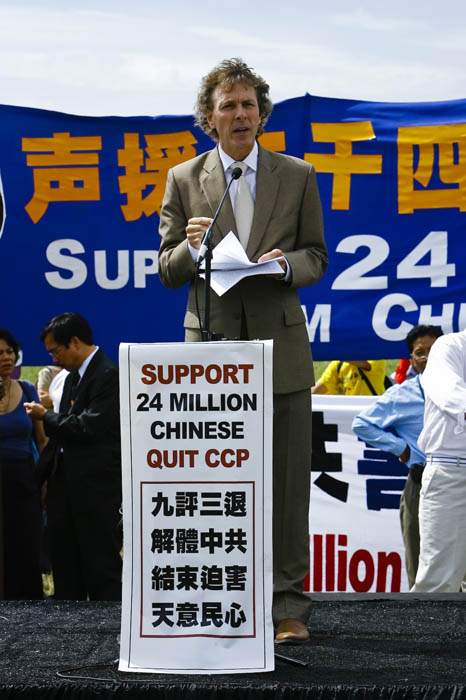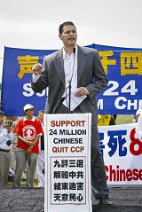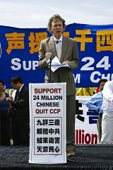 ![]() 世界人权执行主席提姆库柏(Timothy Cooper)在集会发言 |