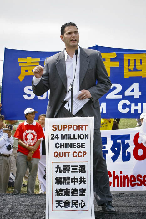 高大维说,“中共不等于中国”,广大中国人民抛弃中共的行动得到海外主流各界支持。中共活摘法轮功学员器官的罪恶更引起各界愤慨。他呼吁还没有退出中共的中国人要做承天意、得民心之事,参与到推动和平结束中共暴政的退!党!大潮之中。