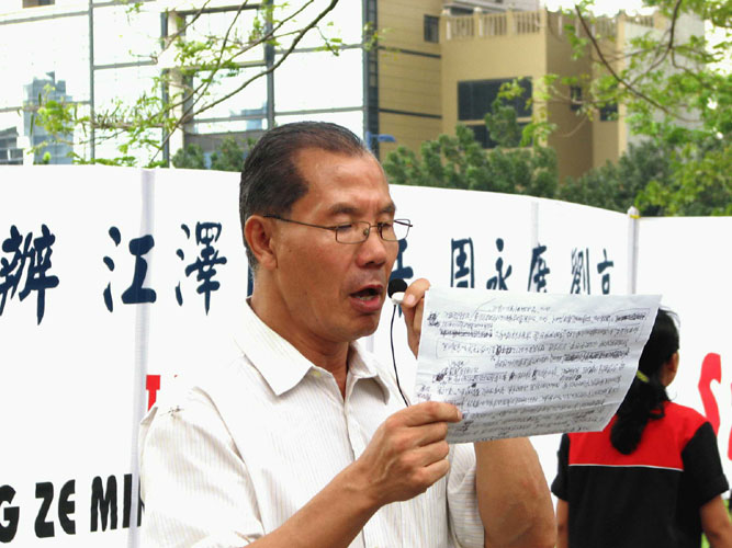 这次集会的组织者KYEL说:“迫害已经八年了,我们就是要向世人揭露中共迫害法轮功的罪行,使社会大众都能了解事实真相并共同制止迫害。我们还要把迫害法轮功的最大凶手江泽民、罗干、周永康、刘京送上法庭法办。”