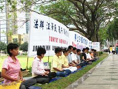 ![]() 印尼法轮功学员在中使馆前集会,抗议中共迫害 |