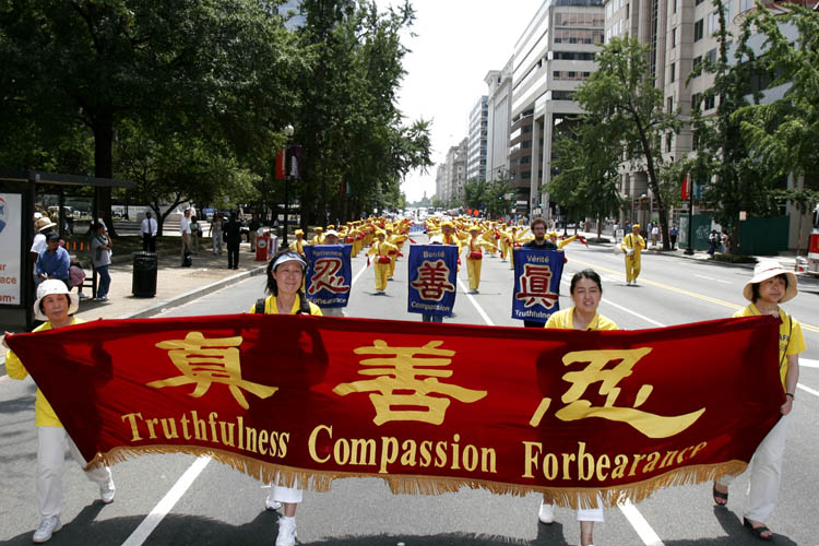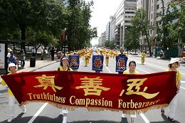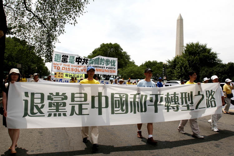 【明慧网二零零七年七月二十一日】二零零七年七月二十日,来自世界各地上千法轮功学员及各界人士,聚集在美国首都的华盛顿,举办声援二千四百万中国民众退出中共的集会和游行;呼吁各界以各种和平方式解体中共邪恶暴政,结束其对法轮功学员的
