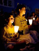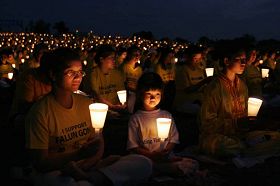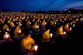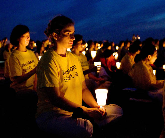这是由法轮功学员作词、作曲、配乐的歌曲《请与我比邻而坐》;二零零七年七月二十日夜幕降临之时,在美国首都的华盛顿纪念碑北广场上空飘扬着这首表达了法轮功学员的心声。二千多位法轮功学员手捧一只只点燃的蜡烛,静静的坐在微风中,悼念为维护“真、善、忍”真理而遭中共迫害致死的法轮功学员,呼吁立即结束长达八年的残酷迫害,呼唤世人快快觉醒,了解真相。