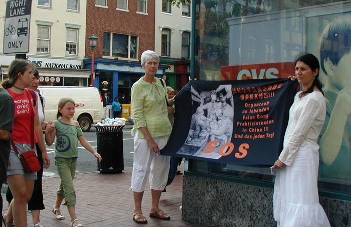 那位女子姓董,从九七年开始修炼法轮功,由于中共从九九年七月二十日开始对法轮功实行严酷的迫害,董小姐不得已于二零零一年到泰国避难,经过三年半,作为联合国难民的她得以来到美国。提到国内国外的差别,董小姐最大的感慨是美国真的是自由的,感觉空气都是自由的,美国人很善良,很讲人权,他们有一定的信仰并支持信仰,与中共控制下的中国大陆有天壤之别(指迫害法轮功信仰)。她这次到华盛顿DC来是为了制止中共继续迫害法轮功。董小姐表示,从八年前“七·二零”开始,无数的法轮功学员被关押、被酷刑折磨,尤其是去年被揭露出来的中共对法轮功学员实行活体摘取器官的行径,令人发指。曾亲身经历了中共的迫害,董小姐表示非常想来参加这次活动,来见证中共解体的历史时刻,她感到现在给中国人讲真相比过去容易多了,有人当场就表示三:退.(退出中共党、团、队)。