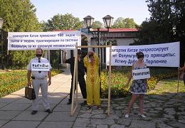 已经持续了八年。二零零七年七月二十日,俄罗斯法轮功学员在高加索矿泉区的大城市皮基高尔斯克(Pijigorsk)的市中心举办反