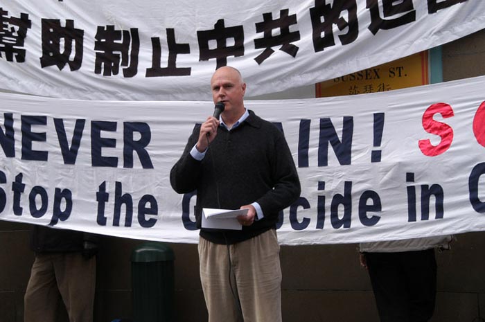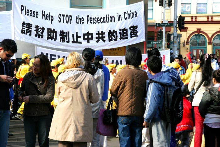 悉尼法轮功学员曾铮在集会上说,在这八年之中,亿万法轮功学员所承受的苦难是史无前例的。到今天为止,已有三千零七十三名法轮功学员被证实死于迫害;还有不知其数的法轮功学员在‘这个星球上从未有过的邪恶’──器官活摘中,遭虐杀致死。