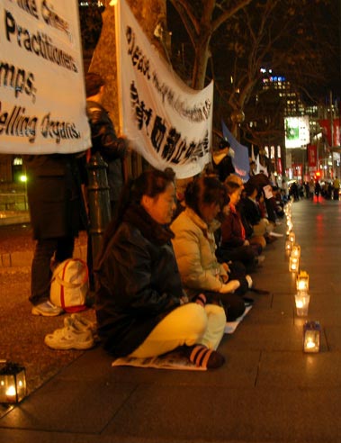 法轮功学员的集会和天国乐团的演奏吸引了过往众多行人驻步观看了解真相,很多路人签名表示声援和支持。当晚,法轮功学员还在悉尼市政厅前,举行庄严肃穆的烛光守夜,悼念那些被迫害致死的法轮功学员。