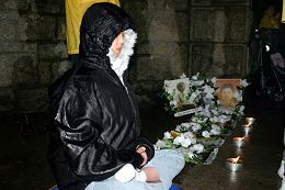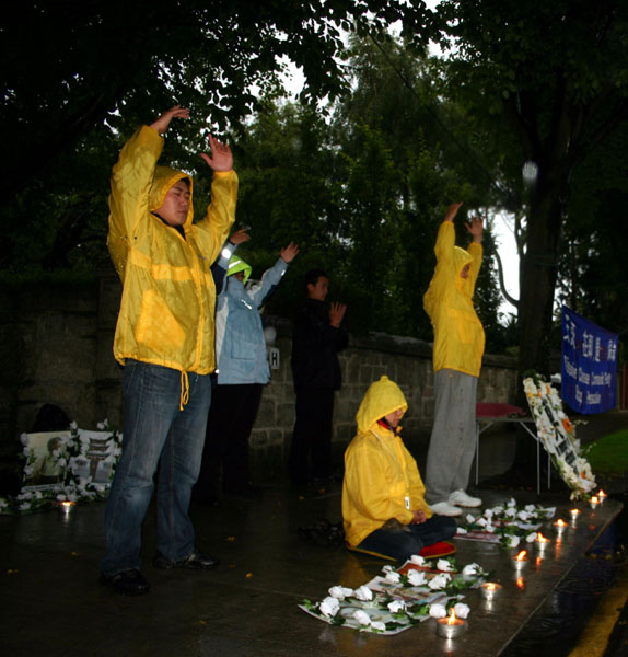 最后法轮功学员赵明表示:“今天天气一直都不好,一直都在下雨,但是我们的蜡烛并没有熄灭。在这八年迫害中,法轮大法也像这蜡烛一样,在风雨中没有灭,没有倒下。可是,中共邪*党-却在它发动的对‘真善忍’的迫害中在走向解体,走向灭亡。”