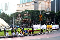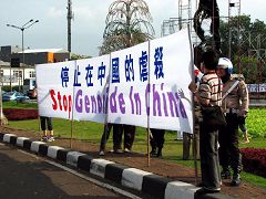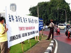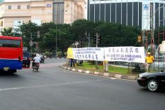 ![]() 法轮功学员展示横幅,揭露迫害 |