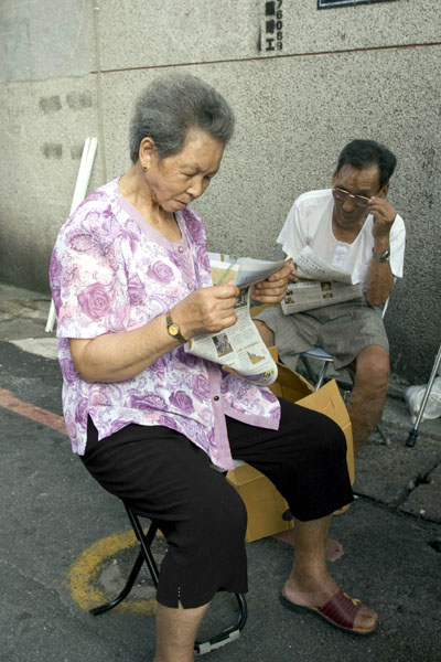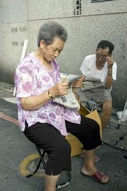 ![]() 民众拿到资料迫不及待的在路边认真的读起来 |