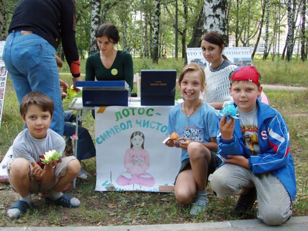 ![]() 在下诺夫哥罗德的讲真相点,孩子们学会了叠纸莲花,也知道了法轮功真相。 |