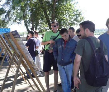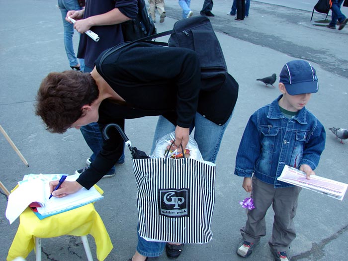 ![]() 法轮功学员在向公园里的游人们发资料讲真相(下诺夫哥罗德)。 |