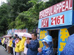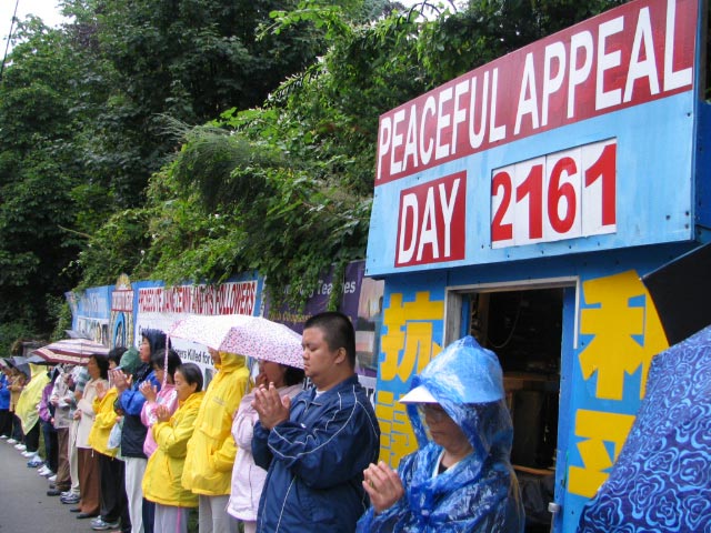 温哥华法轮功学员自二零零一年八月二十日开始,在中领馆前进行二十四小时持续和平抗议,至今年的七月二十日已达二千一百六十一天。