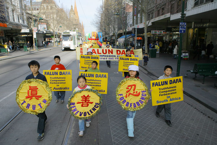 集会后,举行了反迫害游行,行人们对游行队伍展示的法轮功受迫害真相感到震惊,观看的非常仔细,纷纷接受真相传单,并询问详情。