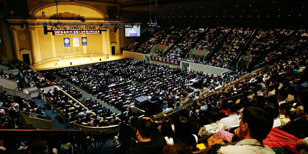 【明慧网二零零七年七月二十三日】二零零七年华盛顿DC法轮大法修炼心得交流会,于七月二十二日星期日,在位于美国华盛顿DC市中心的DAR宪政大厅(DAR Constitution Hall)召开。上午十一点左右,慈悲伟大的师尊亲临会场,给弟子们讲法约半小时。