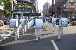 二十一日刚好是周末,游行在台北的中和四号公园展开,队伍由前导车、二百五十人的「天国乐团」军乐队、手持印有「法轮大法」的旗队所组成,沿路走过最热闹的商店街道或大型户外公园。