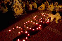八年前的一九九九年七月二十日,前中共领导人江××下令镇压法轮功,因而造成全中国的迫害悲剧。为了悼念被迫害致死的同修,并呼吁世人一同制止迫害,全世界的法轮功学员在每年的七月二十日,都会举办游行或烛光悼念会等。