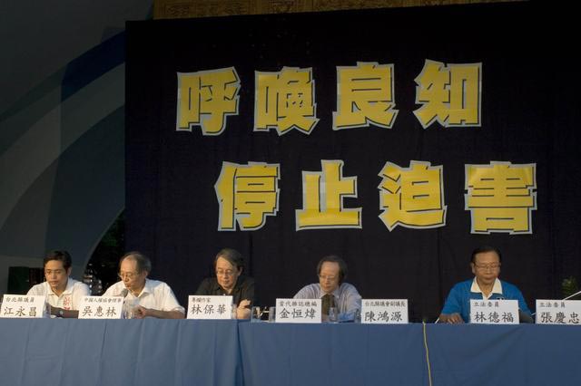 ![]() 台湾各界政坛人士、人权团体代表与会,声援法轮功学员早日停止这场迫害 |