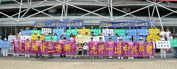 声援活动于当天中午结集后展开。退!党!服务中心志工分布在桃园火车站圆环、县府路、三民路、东门步道、体育馆等地,播放《·九·评*共产党》内容、设立图片展。法轮功学员及各界人士并以「和平呼唤良知 停止八年迫害」、「法轮大法好」、「声援二千四百万勇士退出中共邪*党-」等横幅拉开活动序幕。