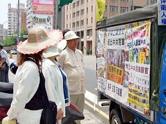 ![]() 广播车播放着《·九·评*共产党》,吸引民众驻足了解真相 |