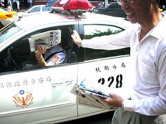 ![]() 警车里面的警官说:「请你也给我一份资料!」 |