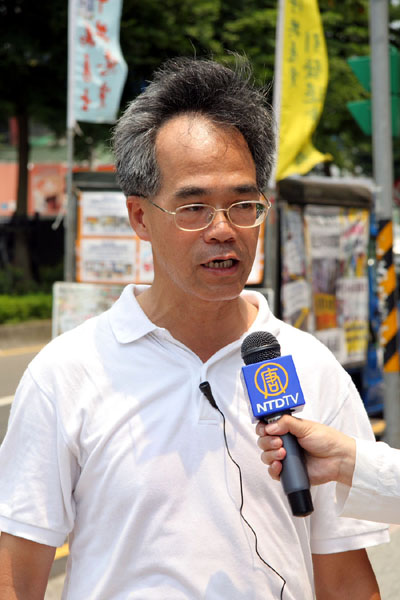 ![]() 由香港来台定居的民众郭先生谈到:来参加声援退!党!活动,是因无法认同共产党的无神论及其违反传统礼义道德。中国共产党不瓦解,中国就没希望。 |