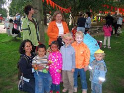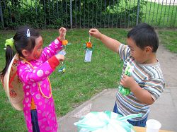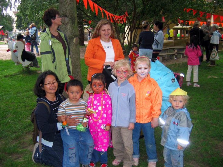 今年夏天幼儿园决定花样翻新,早在联欢活动两个月前,园长就找我们几个外国孩子的家长开会商量对策,希望我们到时能够展示具有自己民族特色的节目。我决定将法轮大法的美好带给这些可爱的孩子及家长们。当我向园长简要的介绍完大法及五套功法后,她立刻表示,希望我能将这么美好的节目带给家长及孩子们。到时儿子所在小组的小朋友们还将别着写有中文和德文姓名的标签参加联欢。
