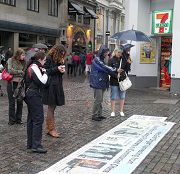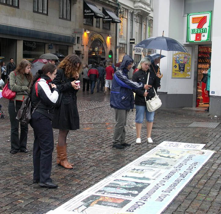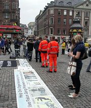 ![]() 哥本哈根市商业街广场上,法轮功真相图片引起人们的关注 |