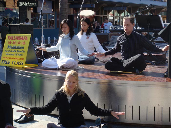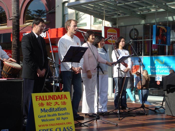曼理市是悉尼著名的海滨旅游区,常年吸引着大量各国游客。这一天,法轮功学员在市中心举行了四个小时的功法演示和演出活动,并在信息台与人们交流,让许多当地人和游客了解了大法和大法受迫害的情况。法轮功学员组成的乐队和合唱团成员演出了精彩的节目,其中很多是乐队成员自己创作的歌曲,揭示迫害的真相,唤起人们的善心,引得路人纷纷驻足观赏。这次信息日吸引了大量观众,他们在了解了大法受迫害的情况之后,纷纷表示同情和对反迫害的支持。