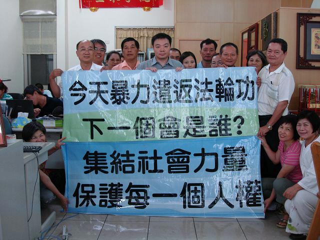 ![]() (中穿浅蓝色)屏东县长曹启鸿支持法轮功学员请愿,人权圣火传递屏东县 |