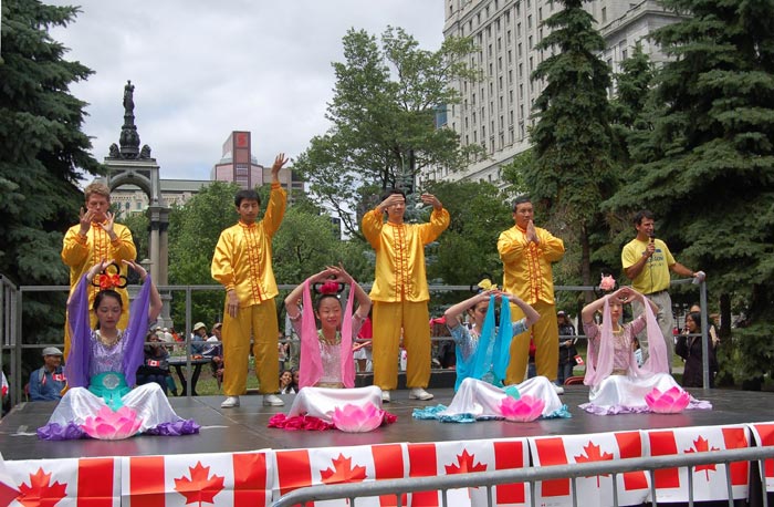 ![]() 法轮功学员在国庆庆典上做功法演示 |