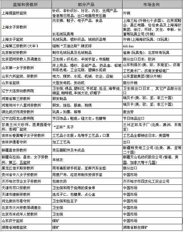 遍布中国的一千多家监狱、劳教所的几百万现代奴工,日日夜夜在最恶劣的工作环境中,从事着有损健康甚至危及生命的工作;那些感染了结核病、皮肤病、肝炎、性病等传染病的在押人员得不到有效的隔离与医治,仍被迫继续生产劳作,从儿童玩具到床上用品,从时装到内衣,从化妆棉签到牙签、卫生筷……,伪劣、有毒和被病毒污染的奴工产品被销往世界各地,进入千家万户。