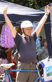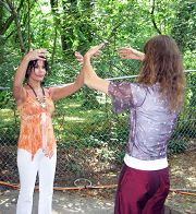 ![]() 迪安娜(左):就象有磁力的吸引一样,我来到了法轮功的信息摊位前,并尝试炼了五套功法。 |